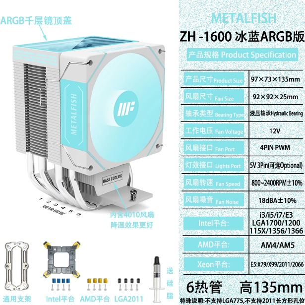 棱镜1600风冷6热管CPU散热器